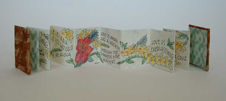 Love is Everlasting. Traditional Hawaiian Proverb. (2003) 1 1/4 by 1 5/16 inches. 10 accordion pages. 100 copies.