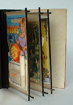 together with little paper hinges. The covers are painted wood, painted by Donna