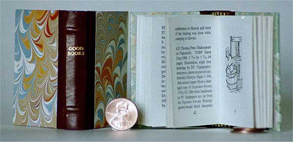 "Inspired by bibliographies of West Coast printers like Adrian Wilson and the Grabhorns, we decided to make one ourselves. We started the project in 1990, ten years after we made our first miniature book. I had recently met Terry Belanger of the Rare Book School, and he provided guidance regarding what information to include and how to format the bibliography. It was made with our miniature-book collectors in mind, so we wanted it to be miniature-book centric: we listed the thirty-seven miniature books as A 1-37, the six books we made before our first miniature as B 1-6, and the larger books made after first our first miniature as